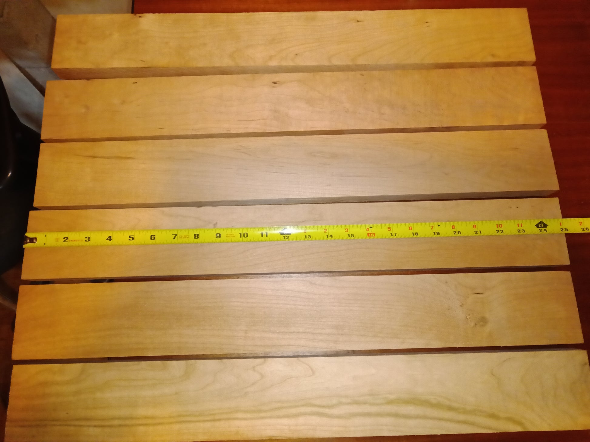 Cherry lumber. Pre-cut, S4S. 3 3/16" x 15/16" x 25". 6 pieces.